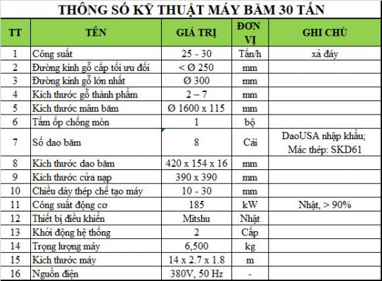 Máy băm gỗ được sử dụng công nghệ dao cắt bố trí trên mân băm một góc 53 độ và truyền động với tốc độ cao. Dao băm được nhập khẩu trực tiếp từ Mỹ .Độ bền dao đạt trên 6 tháng, tiết kiệm được chi phí thay dao cũng như nhân công.